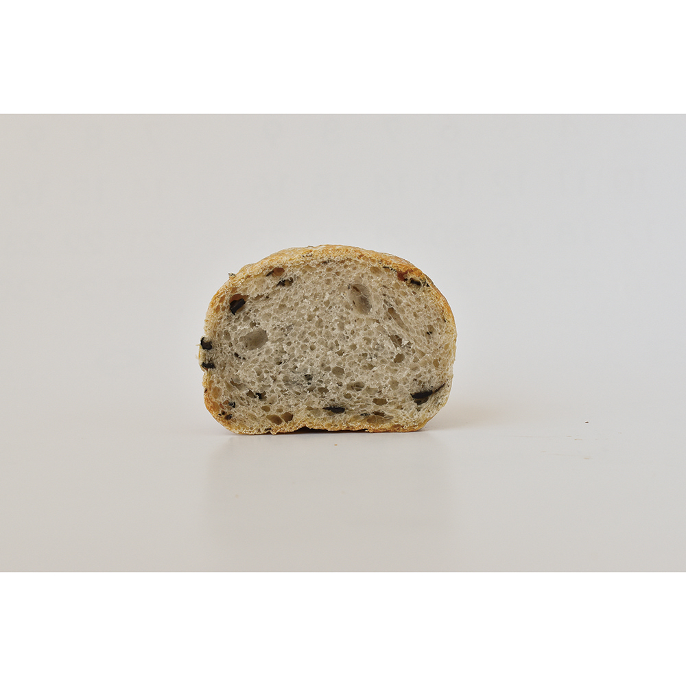 - プレーンのパンの中にブラックオリーブが含まれています。オリーブの風味と塩味を味わっていただけるパンです。ヘルシーセットにどうぞ。