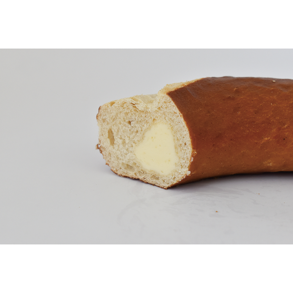 伝統的なブレッツェルの中に発酵バターを注入したパン。温めて食べるとバターがしみてさらにおいしいです。解凍のみのでご利用できます。